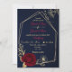 élégantes fleurs de luxe bordeaux et or avec quelques feuilles d'or sur cadre géométrique marine bleu faire-part de mariage Les détails de la parties scintillant sont simulés