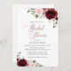 Invitations amis et famille dans le style et donner le ton pour votre journée spéciale avec cette charmante invitation à la douche nuptiale. Le design présente des fleurs d'aquarelle bordeaux et rose vif et de la verdure sur l'arrière - plan blanc.