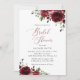 Invitations amis et famille dans le style et donner le ton pour votre journée spéciale avec cette charmante invitation à la douche nuptiale. Le design présente des fleurs d'aquarelle bordeaux et de la verdure sur l'arrière - plan blanc.