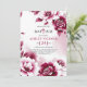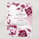 Burgundy floral lave fille Baptême invitation. Cette invitation est agrémentée d'une décoration fleurie d'inspiration porcelaine. Belles fleurs de pivoines, réalisées dans le style de peinture à l'encre traditionnelle, cascade avec une fluidité gracieuse. Une palette riche en bordeaux et rose domine ponctuée de reflets blancs et croquants qui attirent la lumière. Ce design élégant encadre les coins de l'invitation, créant une harmonie visuelle qui espace feuille pour que vos détails mariages personnalisés soient magnifiquement affichés. La lettre "T" dans le mot "BAPTISM" est remplacée par une croix. Il y a aussi un lavage à l'aquarelle rose. Le dos est orné d'un motif floral.