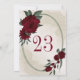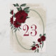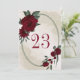 Carte de numéro de table unique avec des fleurs bordeaux romantiques et des feuilles verts sur un beau cadre géométrique. POUR PLUS DE PRODUITS CORRESPONDANTS cliquez sur la collection ci-dessus ou contactez-moi.