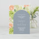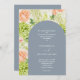 Toutes les invitations de mariage bleu et blanc brumeux présentent les détails de votre cérémonie sur le devant et plus de détails sur le dos en lettres blanches chic. De belles fleurs d'aquarelle comprennent des hydrangées blanches et vertes, des roses roses et crème, des marguerites, des petites tiges et des feuilles. CORRESPONDANCE d'objets dans notre collection.