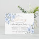 Fleurs aquarelles, Roses bleus poussiéreux, hydrangée blanche et feuillage vert sauge, une Invitation Bénédiction. Accentué par l'élégant et moderne faux script manuscrit Blessing Invitations. DO-IT-YOURSELF couleur arrière - plan.