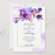 Faire-part de mariage de fleurs d'aquarelle bleu violet avec QR RSVP à l'arrière (pour remplir vos url détails dans le champ et le code sera généré).