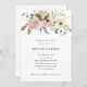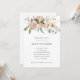Cette invitation simple et élégante de mariage ou de douche nuptiale présente un bouquet boho rustique de fleurs d'aquarelle et de verdure dans des tons neutres de pêche en terre cuite et en ivoire, sur un arrière - plan blanc.