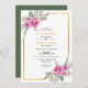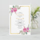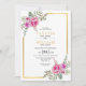 Invitation Fleurs d'aquarelle rose, cadre doré mariage