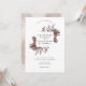 Elégante invitation de mariage avec des roses et feuilles rose pastel.
