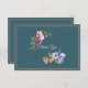 Un très beau tableau de fleurs roses et violettes enfermé dans un petit cadre violet. Le texte est blanc cassé et la police personnalisable à votre goût. Il y a un cadre doré autour du bord extérieur de la carte. Toutes les invitations sont fournies avec des enveloppes blanches standard, cependant, il ya une enveloppe couleur personnalisée pour correspondre à l'aqua sombre si vous souhaitez commander ceux-ci. Au fond de l'invitation se trouve un petit carré d'or avec floral au centre et des initiales de mariée et de mariée dedans. Il s'agit d'une suite mariage avec de nombreuses tailles disponibles, carte de réponse, enregistrer la date, douche nuptiale etc inclus