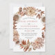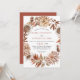 Fleurs d'automne et feuille courent mariage de automne Invitation. Un beau design floral blanc qui présente une couronne de dalia et de fleurs roses et un feuillage aux couleurs terreuses de l'automne. Le dos est en terre cuite couleur argile.