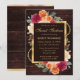 Cette élégante invitation Sweet Sixteen rustique-automne présente un riche fond en bois sombre encadré de florales automnales vibrantes dans des tons chauds d'orange brûlé, de rouge profond, de pêche et de crème. Un cadre doré raffiné met en valeur les détails de votre événement, ajoutant une touche de sophistication à la palette saisonnière cosy. Parfait pour les anniversaires d'automne, les lieux de grange, les célébrations en plein air ou pour quiconque aime l'esthétique rustique chaleureuse avec une finition soignée. Personnalisez le nom, la date et le lieu pour créer un souvenir unique magnifique.