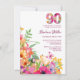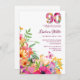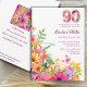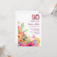 90 Years Flowers - Aquarelle 90th Birthday Invitation. Célébrez un anniversaire marquant dans le style avec cette vibrante invitation à la fête florale du 90e anniversaire. Doté d'un "90" à motifs floraux audacieux en haut et d'un jardin luxuriant aux fleurs colorées en bas, ce design dégage charme et élégance. Avec un texte personnalisable pour le nom, la date, l’heure et le lieu de l’honneur, il est parfait pour les fêtes d’anniversaire du printemps ou de l’été. Un accent papillon apporte une touche de fantaisie, ce qui en fait un choix idéal pour des soirées d'inspiration nature ou jardin. Bon appétit !