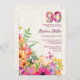 Fleurs 90 Ans - Papillons Linge 90ème Anniversaire Invitation. Célébrez un anniversaire marquant dans le style avec cette vibrante invitation à la fête florale du 90e anniversaire. Doté d'un "90" à motifs floraux audacieux en haut et d'un jardin luxuriant aux fleurs colorées en bas, ce design dégage charme et élégance. Avec un texte personnalisable pour le nom, la date, l’heure et le lieu de l’honneur, il est parfait pour les fêtes d’anniversaire du printemps ou de l’été. Un accent papillon apporte une touche de fantaisie, ce qui en fait un choix idéal pour des soirées d'inspiration nature ou jardin. Bon appétit !