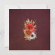 De belles fleurs d'automne décorent deux coins de cette invitation. Roses rouges, fleurs en terre cuite et pivoines blanches se mêlent aux feuilles verts et au feuillage. Les fleurs et le blanc script moderne pop contre l'arrière - plan rouge bordeaux. Cet article fait partie de la collection Bourgogne Fall Flowers.