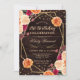 Elégant Boho Aquarelle Rouge et Orange automne fleurs automnales et conception de feuillage avec cadre géométrique or, confetti parties scintillant or et arrière - plan de bois rustique