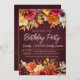 De belles fleurs d'automne créent des bordures florales supérieures et inférieures luxuriantes. Les roses rouges, les fleurs de terre cuite et les pivoines blanches se mélangent avec des feuilles et du feuillage verts. Les fleurs et le script moderne blanc ressortent sur le fond rouge bourgogne. Cet article fait partie de la collection Fleurs d'automne de Bourgogne.