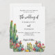 Un arrière - plan blanc décoré de cactus fleuris colorés. Personnalisez et vos noms et détails.