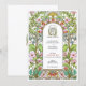 Cette faire-part de mariage d'inspiration Art Nouveau présente un étonnant éventail de fleurs multicolores, dont des fleurs de cerisiers roses, des fleurs de cornes bleues délicates et des fleurs jaunes et rouges éclatantes. La conception complexe des bordures comprend des feuillages verdoyants et des lignes fluides et ornées qui incarnent l'élégance du style Art Nouveau. Un soleil éclatant et doré couronne le design, symbolisant la beauté de l'unité et de la célébration. Parfait pour les mariages d'inspiration nature, vintage ou jardin, cette invitation offre des détails personnalisables et une sophistication intemporelle pour compléter votre journée spéciale.