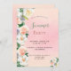 Une invitation estivale en blanc, corail et pêche. Un fond couleur rose gold, rose poudré. Décoré de grandes fleurs aquarelles luxuriantes, fleurs en blanc, corail et pêche. Modèle pour votre nom et les informations de la fête. Le mot Été est écrit avec une police manuscrite de style moderne. Texte en vert, rose gold foncé et noir.