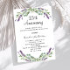 Un arrière - plan blanc décoré de fleurs de lavande et de verdure d'eucalyptus. Personnalisez et vos noms et détails.