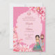 Pink lotus flowers with cute Indian bridal couple personalized wedding invitation. Can change function - wedding, reception, sangeet etc