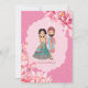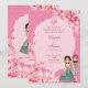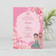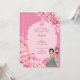 Pink lotus flowers with cute Indian bridal couple personalized wedding invitation. Can change function - wedding, reception, sangeet etc