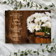 Invitez vos invités à poursuivre la fête le lendemain de la cérémonie de mariage avec la charmante invitation pour un brunch champêtre dans un seau en bois et fleurs de marguerite. Cette invitation rustique et chic pour un déjeuner ou un brunch après le mariage, dans le style d'une ferme ou d'un ranch, présente une photographie florale numérique d'un seau en bois rempli de fleurs de marguerite blanches sur un fond de bois de grange brun.