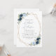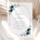 Invitations amis et famille dans le style et donner le ton pour votre journée spéciale avec cette charmante invitation d'anniversaire. Le design présente des fleurs marine et bleu aquarelle, de la verdure et un cadre doré sur l'arrière - plan blanc.