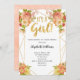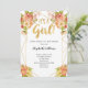 Invitation Fleurs de Pêche Fille Baby shower de cadre géométr