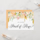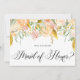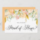 Demandez à vos amis et à votre famille de faire partie de votre mariage avec cette carte plate florale "Seras-Tu Ma Demoiselle d'Honneur" avec des fleurs de pêche aquarelles et des accents de feuilles en feuille d'or et une écriture calligraphique élégante. Les articles assortis sont disponibles.