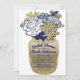 Cartes d'invitation Fleurs de pot Mason Rustique Bleu Or Floral Mariage