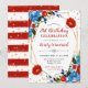 Invitation Fleurs de printemps rouges et bleues Cadre Anniver