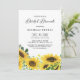 Famille Invitation et amis à votre événement avec cette invitation de brunch à la nuptiale fleurie. Il présente des illustrations d'aquarelle de tournesols et de feuilles d'eucalyptus. Cette invitation aux tournesols est parfaite pour les douches nuptiales d'été et d'automne. Personnalisez en ajoutant les noms, la date, l'heure, le lieu et d'autres détails de l'événement. Vous pouvez également changer l'arrière - plan d'aquarelle jaune en une photo ou toute autre image.