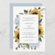 Sunflowers Dusty Blue Flowers Élégante carte d'invitation de mariage. Floral Rustic Greenery Faire-part de mariage. Faire-part de mariage de calligraphie de script moderne