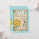 Un design inspiré du pique-nique avec un en vichy d'aqua et un bouquet de tournesol dans un bocal de mason enveloppé dans un burlap et de la dentelle et attaché avec une carte d'invitation au baby shower rustique de ficelle.