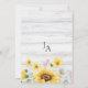 Invitation Fleurs de soleil en bois rustique Monogramme Maria