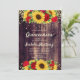 Quinceanera 15ème anniversaire invitation avec des tournesols rustiques, jaune vif, et de belles roses rouges sur un arrière - plan en bois brun foncé.