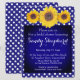 Sunflower et pois nuptiale Shower Invitation. Ce élégant motif à pois bleu et blanc foncé contraste agréablement avec les tournesols jaunes. Une joyeuse invitation à la douche nuptiale d'été. Customisez-le avec les détails de votre fête.