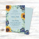 Ce design mariage présente de jolies fleurs bleu aquarelle, des tournesols et des branches d'eucalyptus sur un arrière - plan bleu poussiéreux. Des variantes de cette conception, différents types de papier (y compris les options budgétaires), ainsi que des produits de coordination sont disponibles dans notre boutique, zazzle.com/store/doodlelulu. Contactez-nous si vous avez besoin que cette conception s'applique à un produit spécifique pour créer votre propre article de correspondance unique! Merci tellement pour voir un DoodleLulu par 2 june conception de bogues!