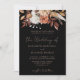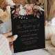 Célébrez votre mariage avec ce magnifique design d'invitation bohème sombre. Le fond noir saisissant contraste parfaitement avec l'en-tête époustouflante de fleurs aquarelles automnales dans des tons chauds de terre cuite, de rouille et de blanc. L'écriture élégante aux tons cuivre et la typographie classique lient l'ensemble, créant une ambiance sophistiquée et romantique pour votre événement automnal.