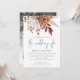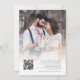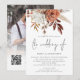 Fleurs de terre cuite rustique, code QR en superposition de photo pour mariage. Des fleurs élégantes, des baies et des herbes dans des tons de terre cuite brune et de crème, dans des couleurs automnales, descendent du haut. Le texte "The Wedding Of" est dans un style d'écriture manuscrite. Personnalisez facilement le reste du texte avec vos propres informations. Remplacez l'image exemple au dos par la vôtre. Ajoutez votre code QR à votre site web de mariage au verso, cela permet à vos invités de répondre et de voir tous les détails sans avoir besoin de cartes de réponse et de détails séparées. Votre code QR sera généré automatiquement pour mettre à jour le code exemple dans le design, il suffit de remplacer l'URL exemple dans le modèle par l'URL de votre propre site web de mariage.