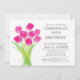 Commencez votre fête d'anniversaire avec notre joli bouquet de tulips invitation avec un bouquet contemporain de fleurs de tulipes roses chaudes sur un arrière - plan blanc. Retournez notre fête d'anniversaire aux fleurs florales pour les adultes pour trouver le dos rose assorti pour une touche spéciale supplémentaire! Disponible dans notre boutique dans une variété de choix de couleur tulipe. Un choix parfait pour un 21ème anniversaire, 30ème anniversaire, 40ème anniversaire, 50ème anniversaire.