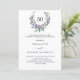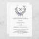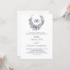 Fond blanc. Une couronne fleurie faite de fleurs de lavande et de verdure d'eucalyptus aquarellée. Personnalisez et ajoutez vos noms, détails. Texte noir.
