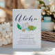 Aloha ! Organiser un dîner de bienvenue sur le thème hawaïen ou luau avant le grand jour ? Invitez amis et famille avec nos adorables invitations de dîner de bienvenue de mariage, présentant un bouquet de fleurs tropicales dans des tons de plage élégants, et "aloha" en lettrage calligraphique moderne chic. Les cartes sont recto verso en aqua uni.