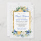 Invitation Fleurs d'été bleues et jaunes Gold Foil Sweet 16