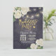 Bachelorette Party / Bridal Shower Invitation Card Modèle - Elégante Fleurs d'Hydrangée Blanche et lumières à cordes sur Vintage Navy Blue Floral Linen Arrière - plan. Un design parfait pour votre grand jour. Tous les styles de texte, couleurs, tailles peuvent être modifiés selon vos besoins !