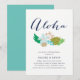 Aloha ! Organisez-vous un dîner de bienvenue sur le thème hawaïen ou luau avant le grand jour ? Invitez amis et famille avec nos adorables invitations de dîner de bienvenue de mariage, mettant en vedette un bouquet de fleurs tropicales dans des tons de plage élégants, et « aloha » en lettrage calligraphique moderne chic. Les cartes sont recto verso en aqua uni.