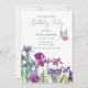 Iris fleurs Anniversaire Fête Invitation avec texte bleu et aquarelle meilleure pour les fêtes d'anniversaire des jeunes filles.