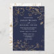Invitation Fleurs d'or bleu marine Élégant Mariage moderne