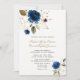 Invitation Fleurs d'or Bleu Whimsical Mariage Monogramme