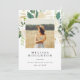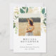 Invitation à la remise des diplômes de photos florale chic avec des fleurs d'aquarelle dans les tons crème et ivoire, des feuilles de verdure botanique et de feuilles d'or. Customisez ce design avec la photo et les détails de votre diplômé en utilisant nos modèles faciles d'utilisation.